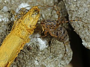 Beutefang: deutlich ist das Fangnetz zu erkennen. |