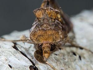 | Steiner et al: | 690 | Synonyme: Phalaena-Noctua chalcites Esper, 1789; chalsytis Hübner, 1790; bengalensis Rossi, 1794; quaestionis Fabricius, 1794; verticillata Guenée, 1852; integra Walker, [1858]; adjuncta Walker, 1865; Plusia verticillata; Plusia chalcites; Phytometra chalcytes; Autographa chalcites |